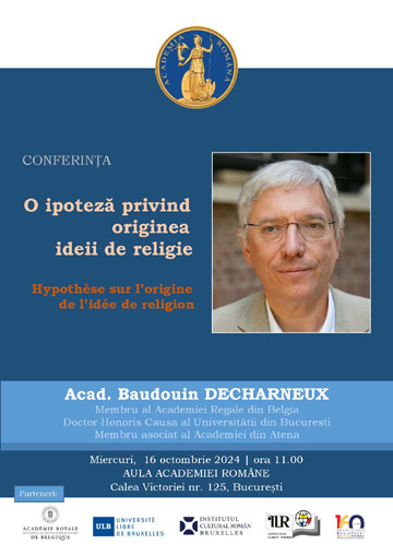 Conferința „O ipoteză privind originea ideii de religie“ − „Hypothèse sur l’origine de l’idée de religion“, prof. univ. Baudouin Decharneux, membru al Academiei Regale din Belgia