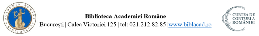 Contact: Biblioteca Academiei Române, Compartiment Comunicare, Relații Publice, comunicare_media@biblacad.ro