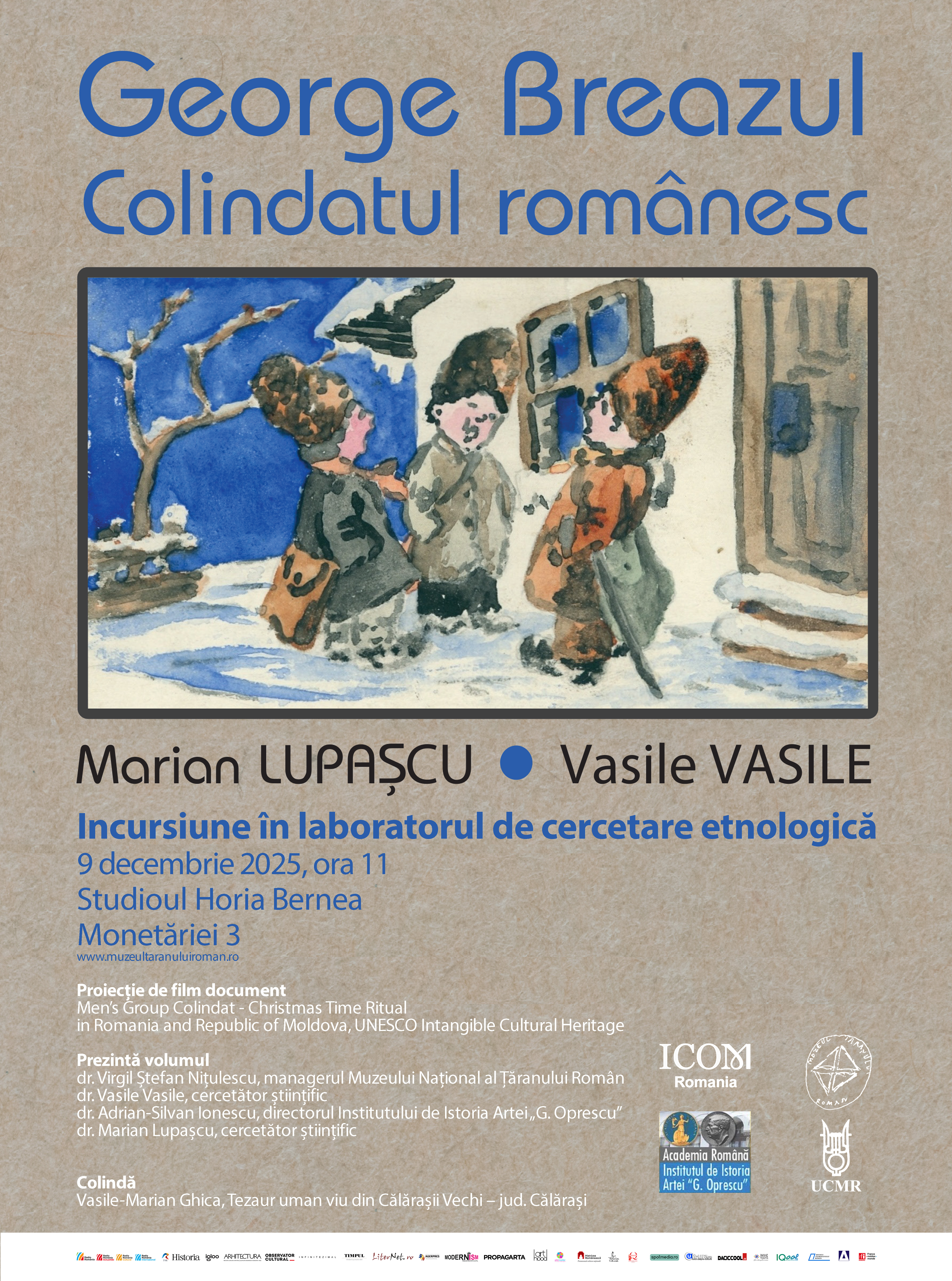 Institutul de Istoria Artei „G. Oprescu” și Uniunea Compozitorilor și Muzicologilor din România lansează marți, 9 decembrie 2025, de la ora 11, în studioul Horia Bernea al Muzeului Național al Țăranului Român volumul George Breazul – Colindatul românesc. Incursiune în laboratorul de cercetare etnologică (Editura Oscar Print, 2025), o lucrare monumentală vizând repertoriul sărbătorile de iarnă.