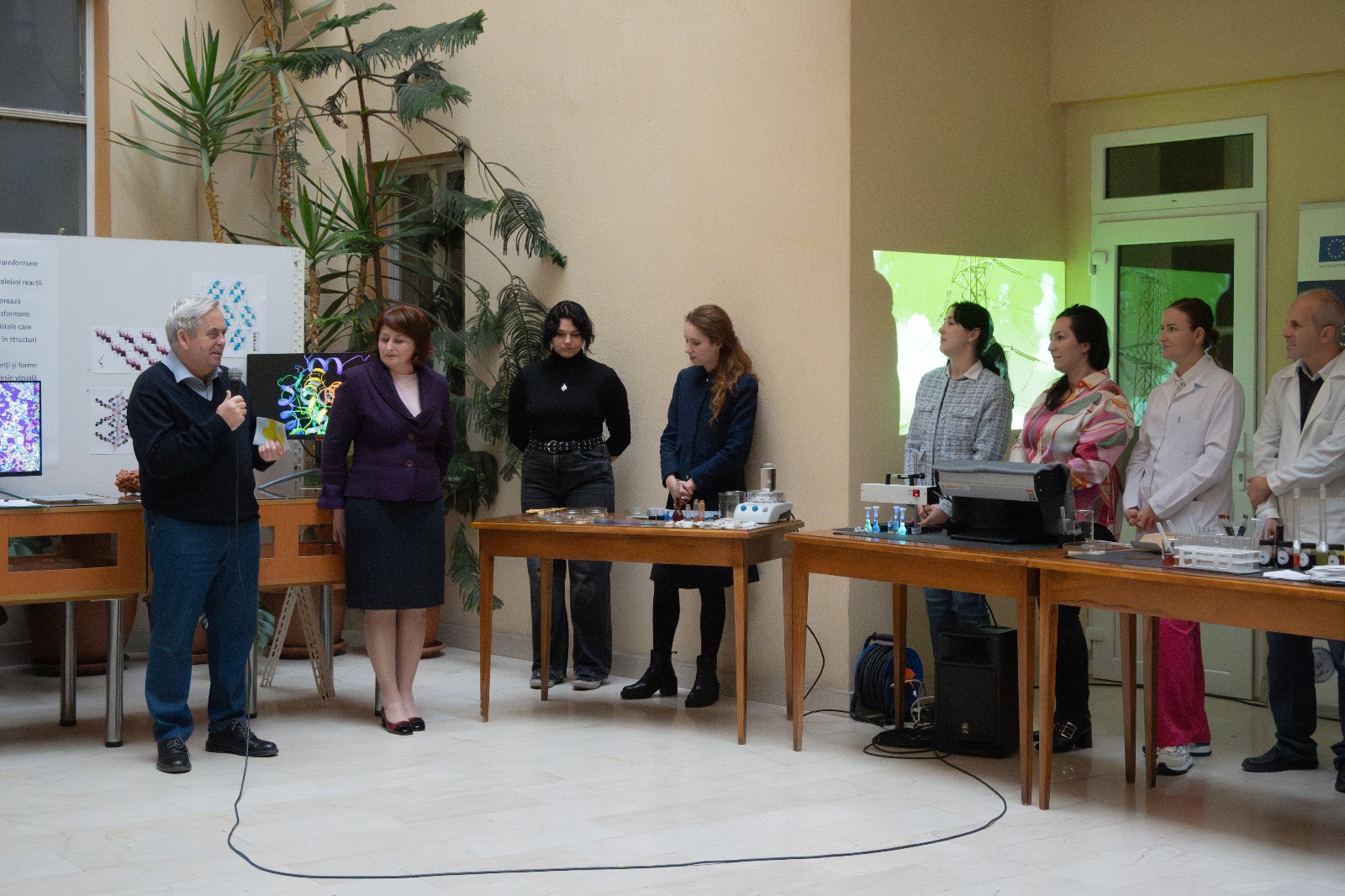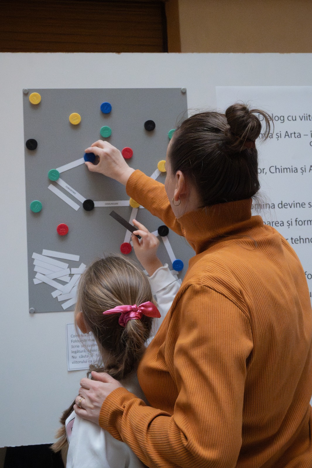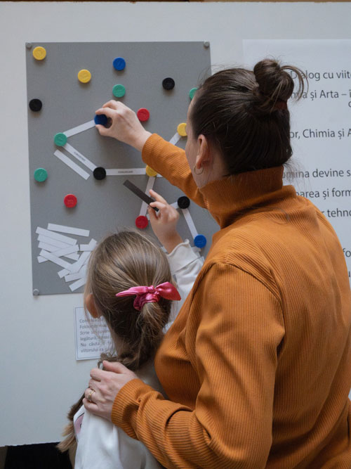 „Expoziția a fost concepută ca o călătorie prin timp și materie; de la sticlă și hârtie, care ilustrează originile cunoașterii în artă și chimie, trece printr-o zonă de tranziție dedicată evoluției tehnicilor și instrumentelor, până la momentul prezent care devine un spațiu activ, cu materiale, texturi și experimente interactive. Vizitatorii au descoperit, în paralel, procese specifice atelierelor de creație și laboratorului de cercetare: de la grunduri, pigmenți și coloranți sintetici, la compuși fluorescenți, cristale și structuri supramoleculare observate la scară nanoscopică. Ne imaginăm viitorul ca spațiu al colaborării și am lansat invitația de a construi împreună, nu separat”, ne-a precizat dr. Manuela Crișan, cercetătoare la Institutul de Chimie „Coriolan Drăgulescu”.