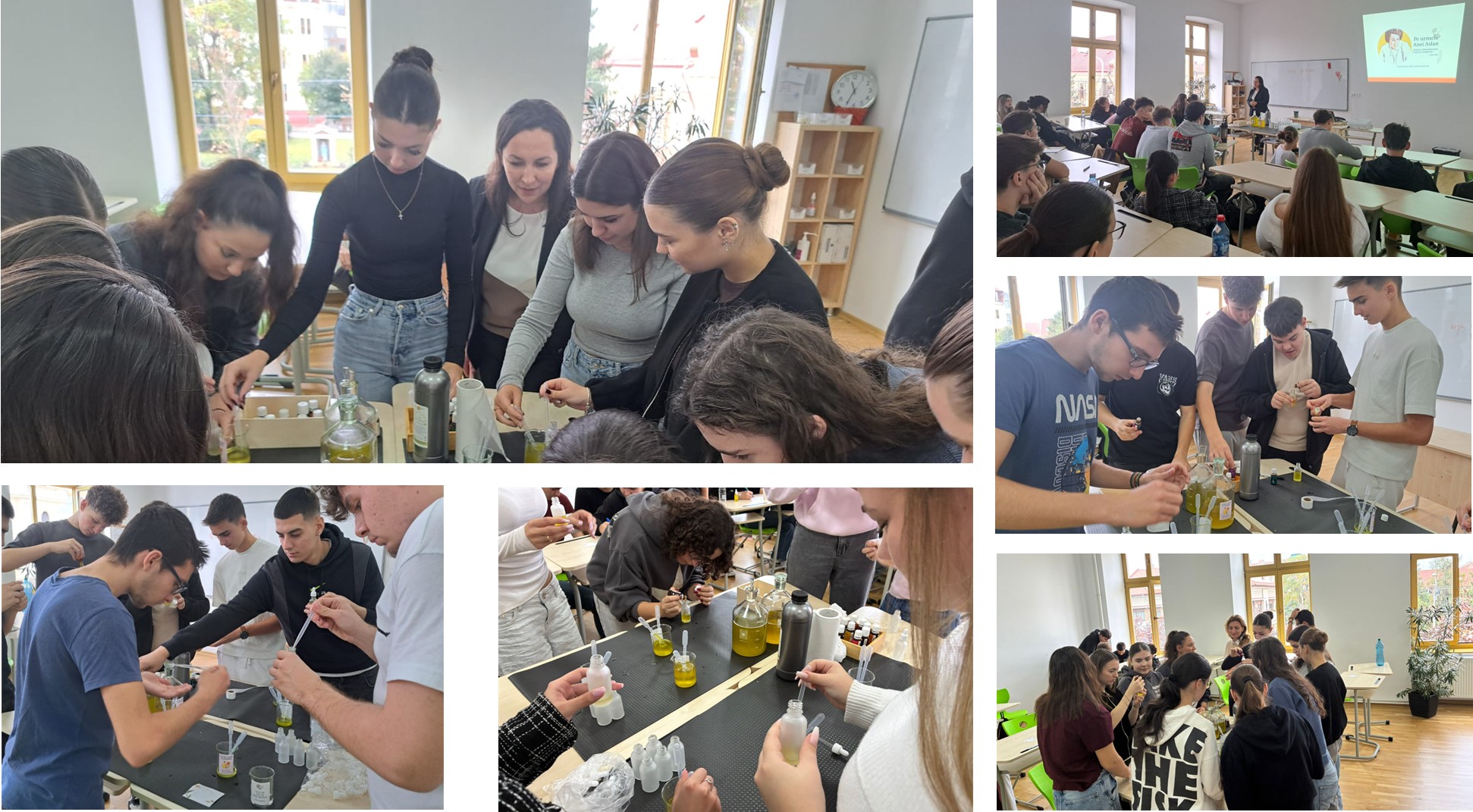 Un alt exemplu: explorarea compușilor bioactivi esențiali ai uleiurilor esențiale și a aplicațiilor în domeniul sănătății ori al produselor de îngrijire personală. Noțiunile teoretice de chimie organică și îndrumările cercetătorilor s-au concretizat în realizarea de către elevi a unei spume naturale pentru curățarea feței, alcătuită din ingrediente de origine naturală, cu potențiale beneficii asupra pielii. În cadrul acestei activități, elevii au selectat și au combinat arome naturale, înțelegând legătura dintre structura chimică, proprietățile funcționale și caracteristicile senzoriale ale produsului.