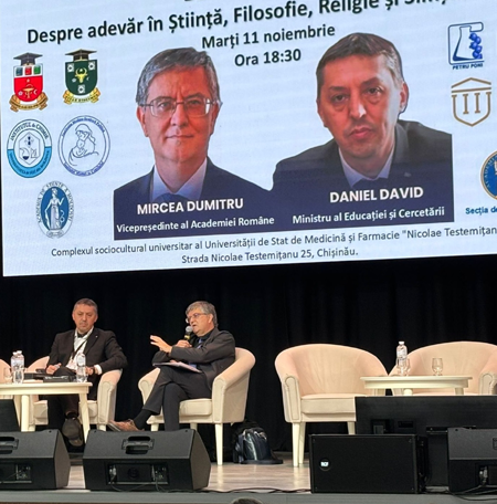 11 noiembrie 2025 Acad. Mircea Dumitru, prezent la dezbaterea-dialog „Despre adevăr în Știință, Filosofie, Religie și Simțul comun”, Chișinău
